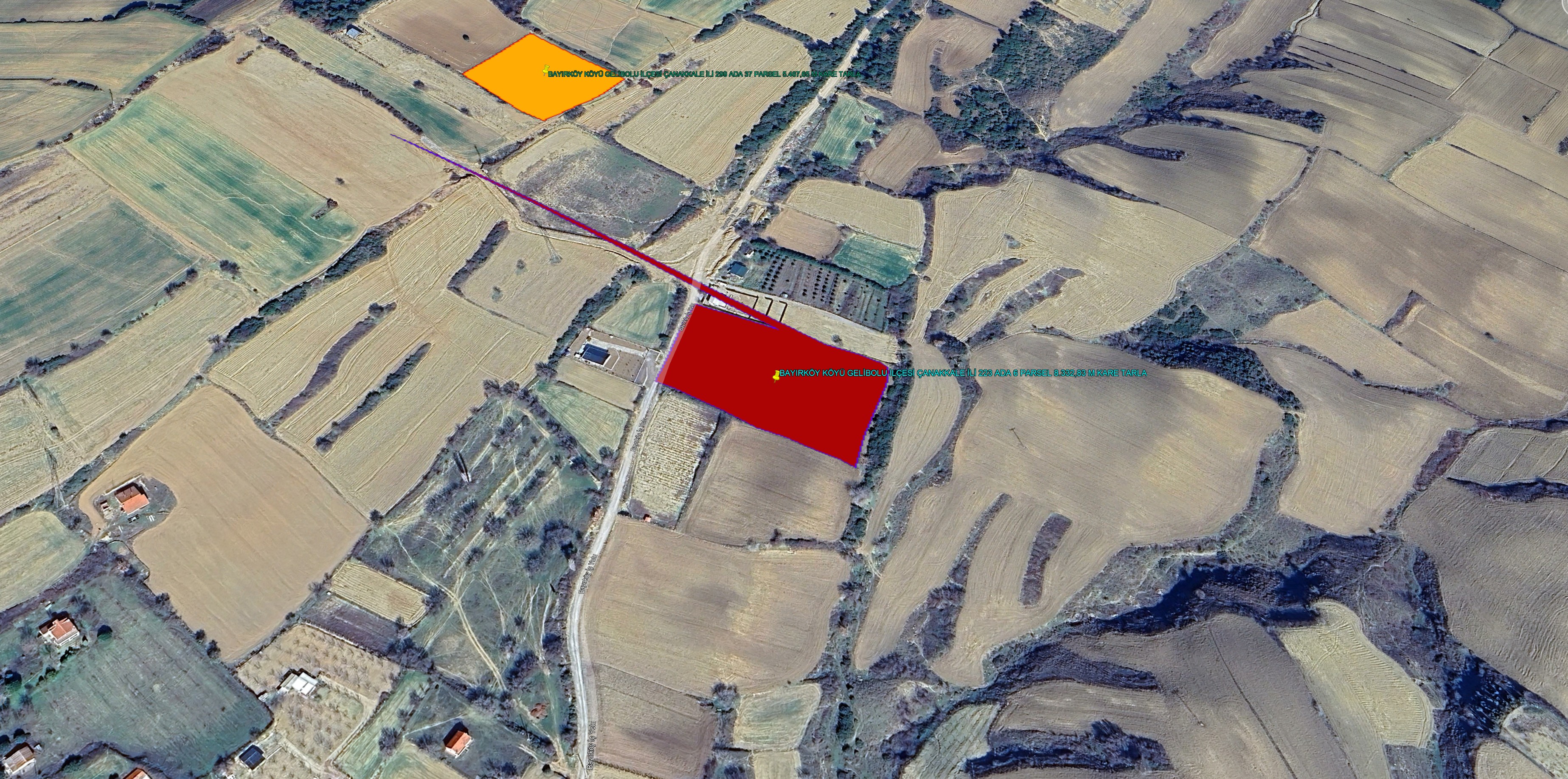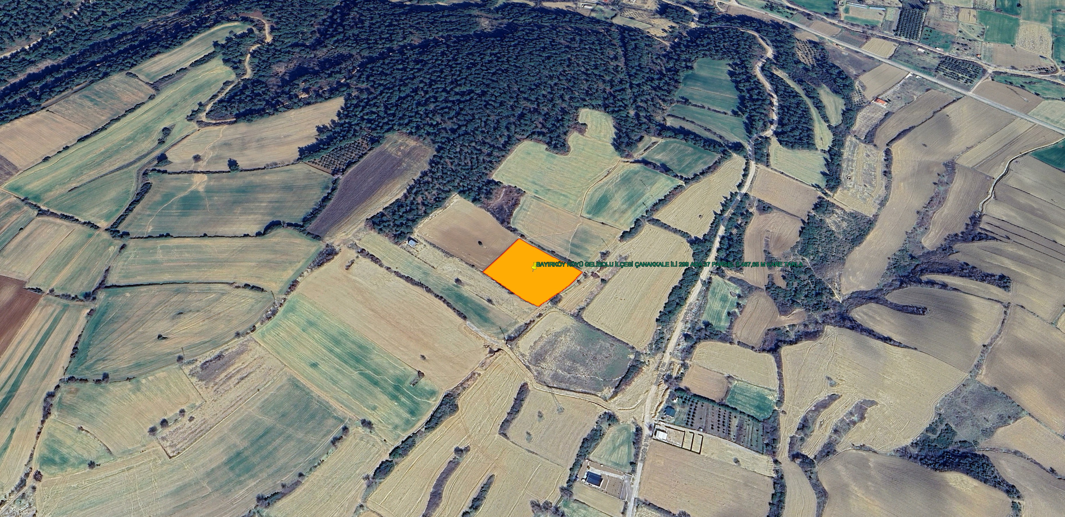 GELİBOLU BAYIRKÖYDE İİKİ YÖNLÜ KADASTROL ASFALT YOLA CEPHE 1.226 M KARE TARLA