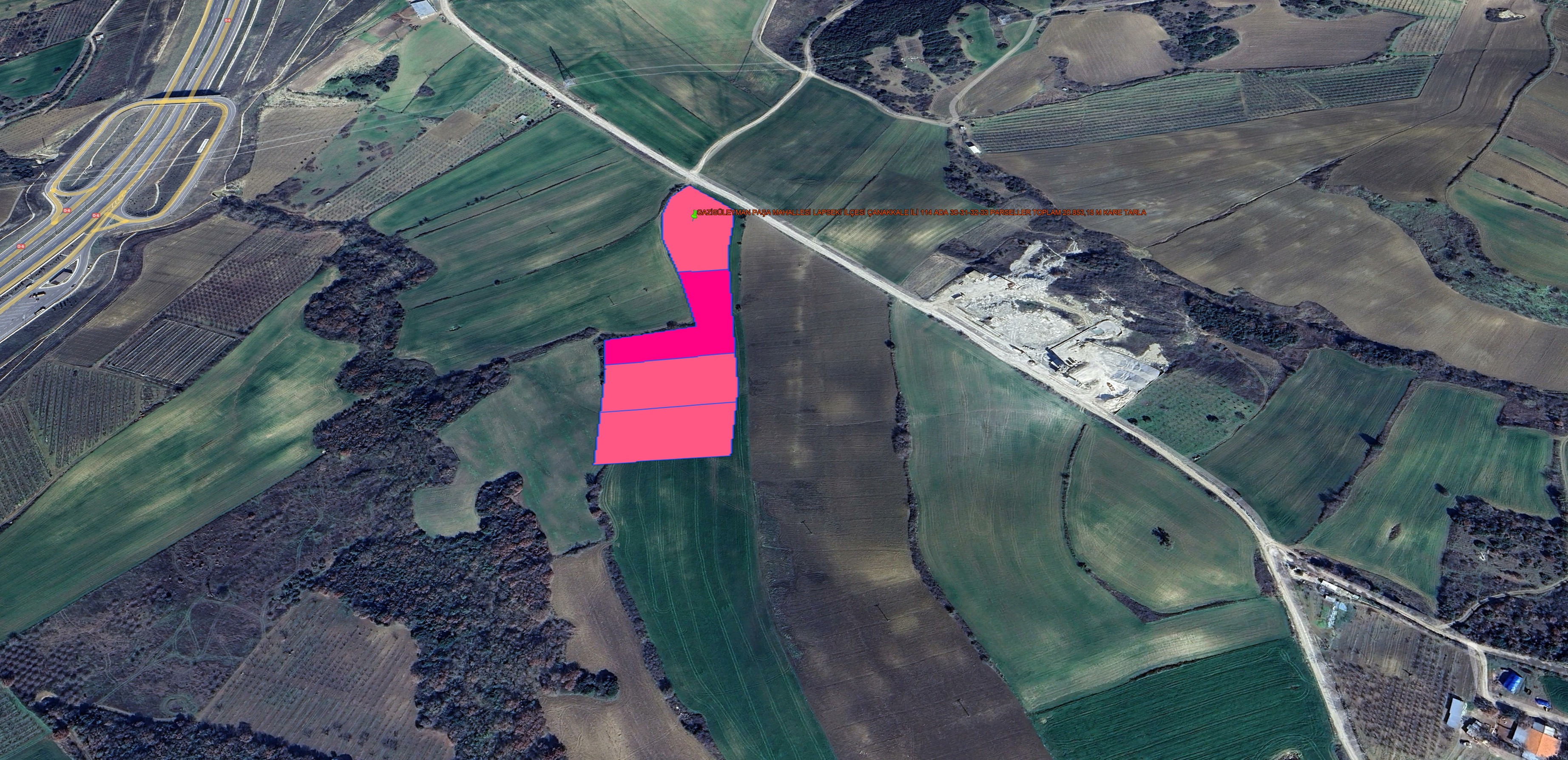 LAPSEKİ DUMANLI KÖYÜNDE KÖY ASFALTININ DİBİNDE 22.103 M KARE TARLA