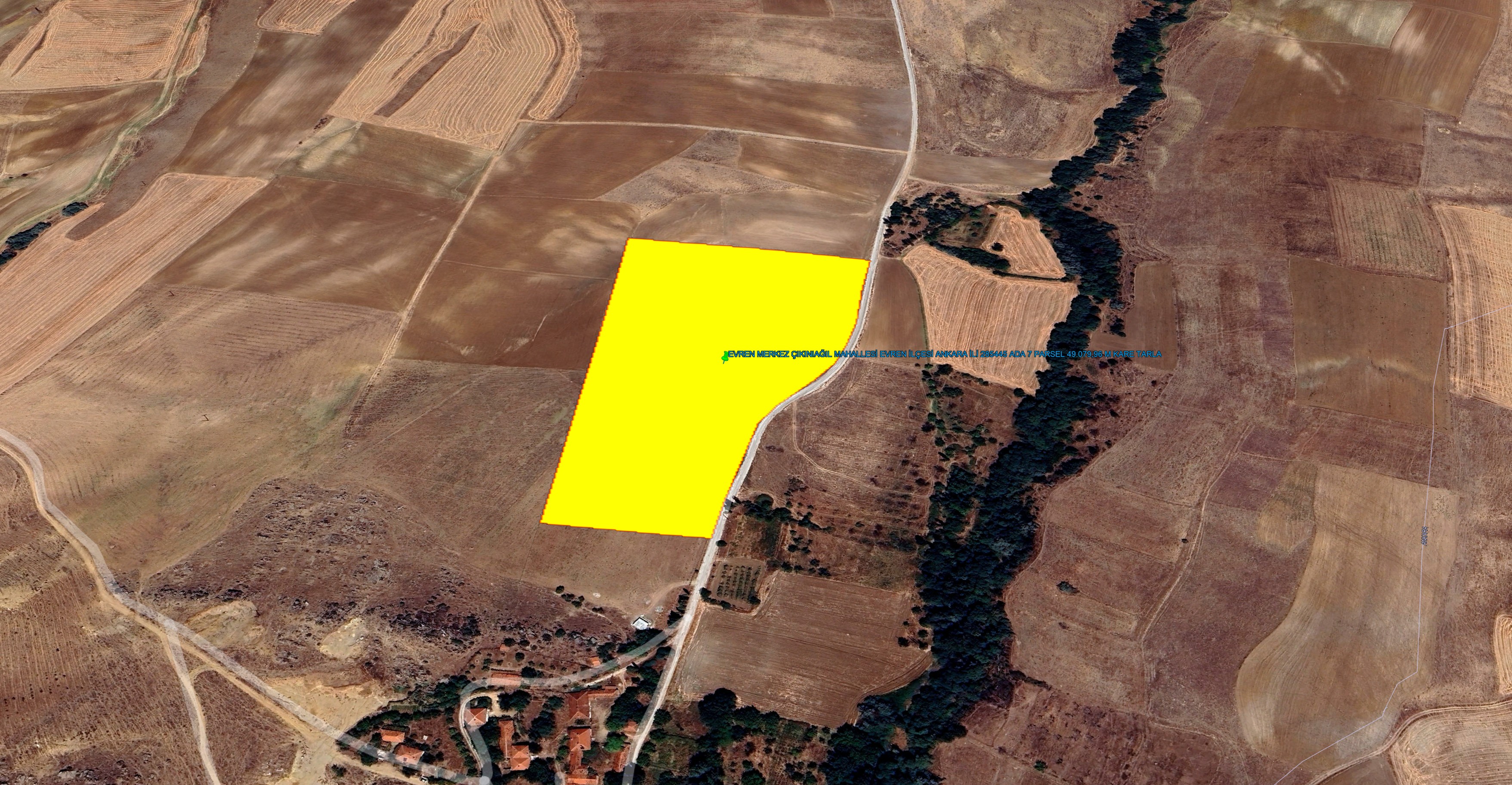 ANKARA EVREN MAHALLESİNDE KÖY ASFALTINA CEPHE ALT YAPI MEVCUT 49.079 M KARE TARLA