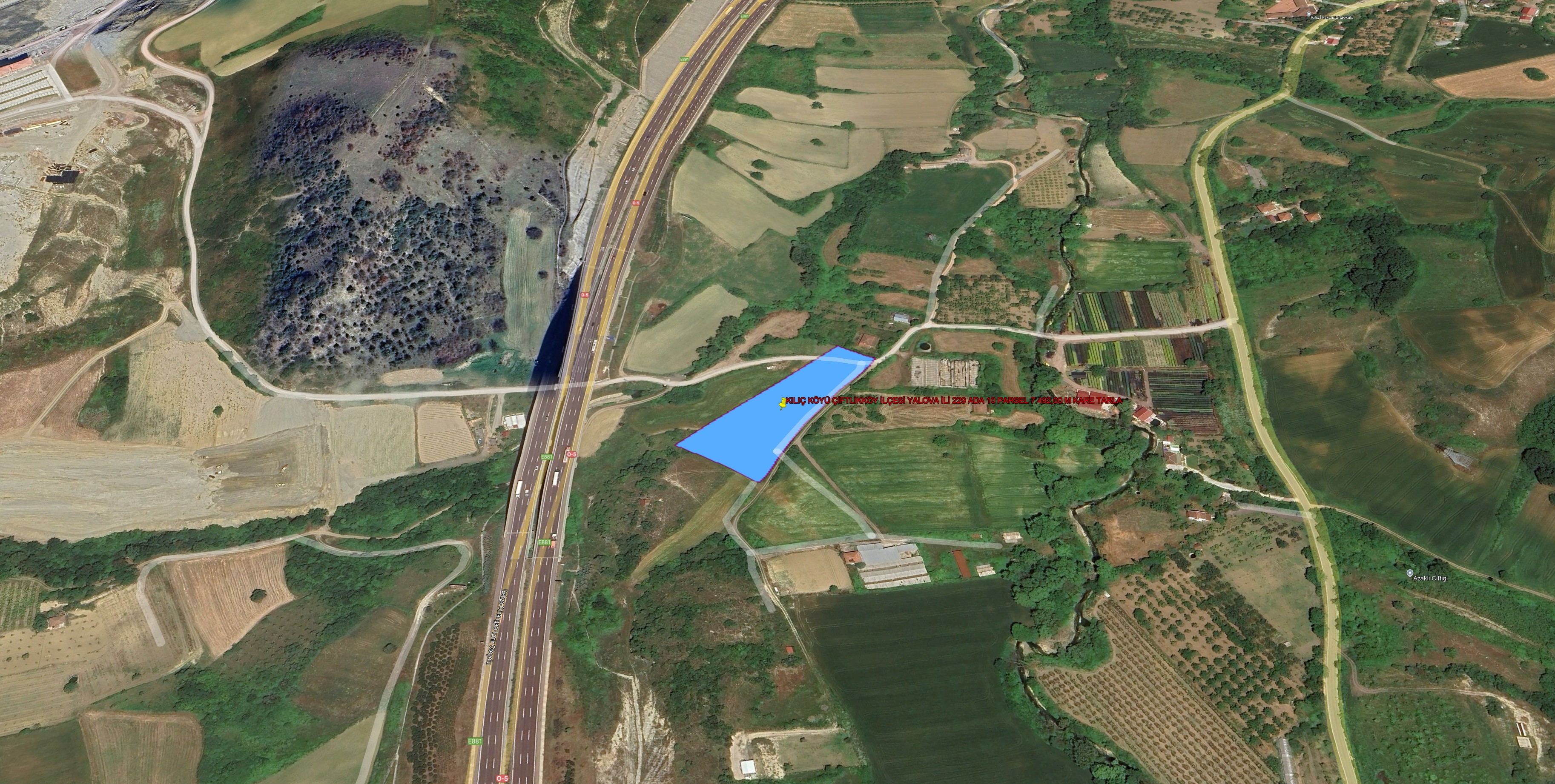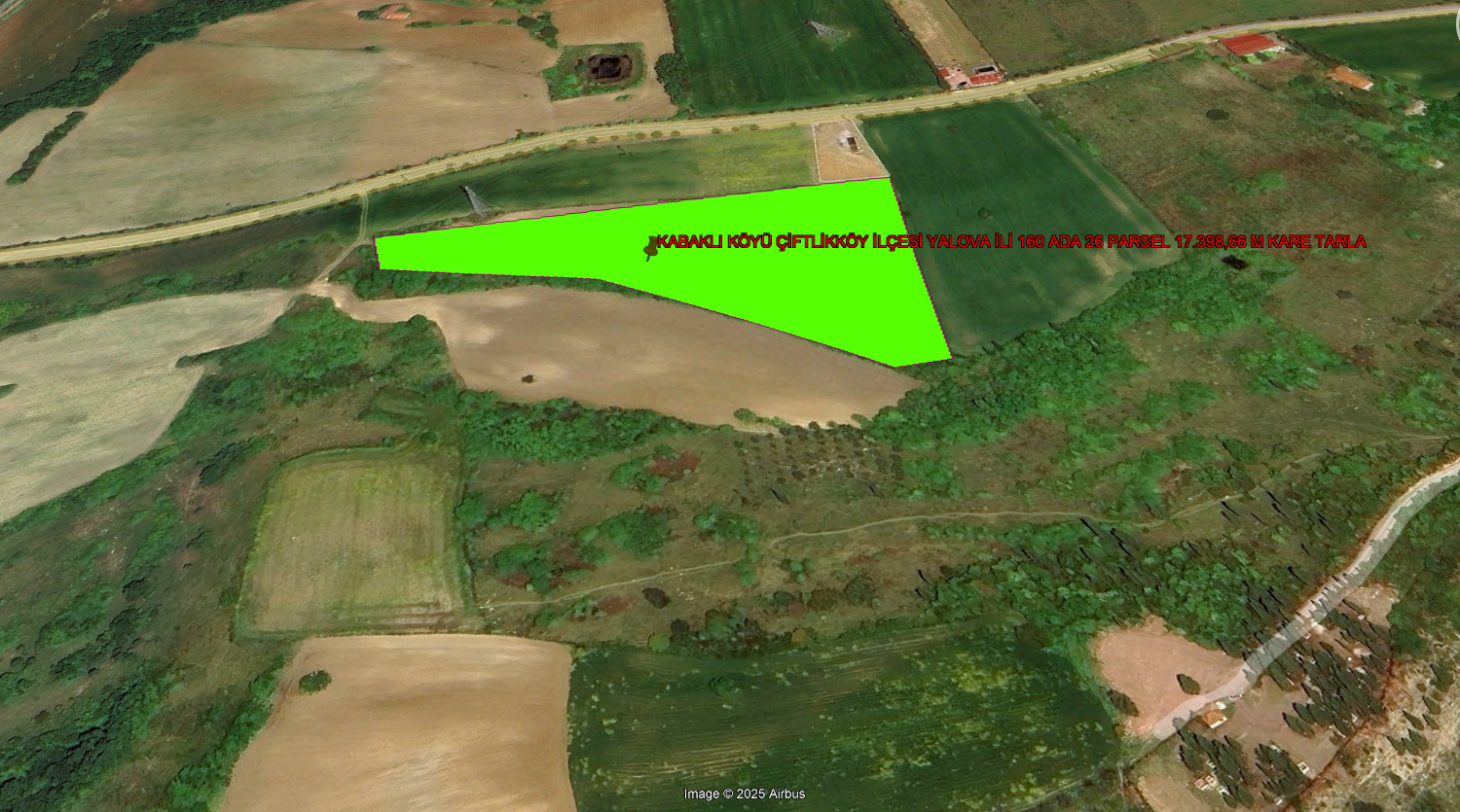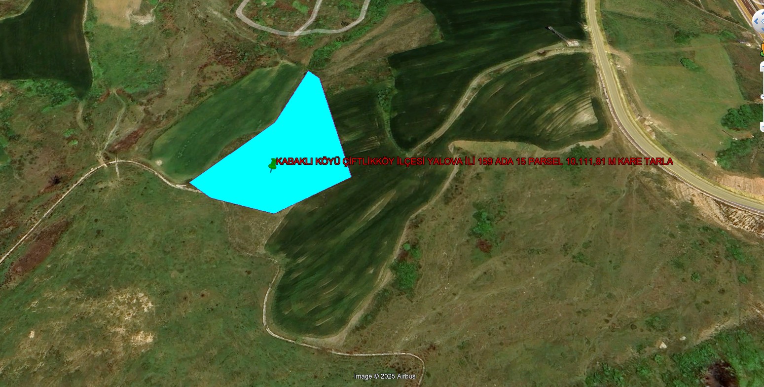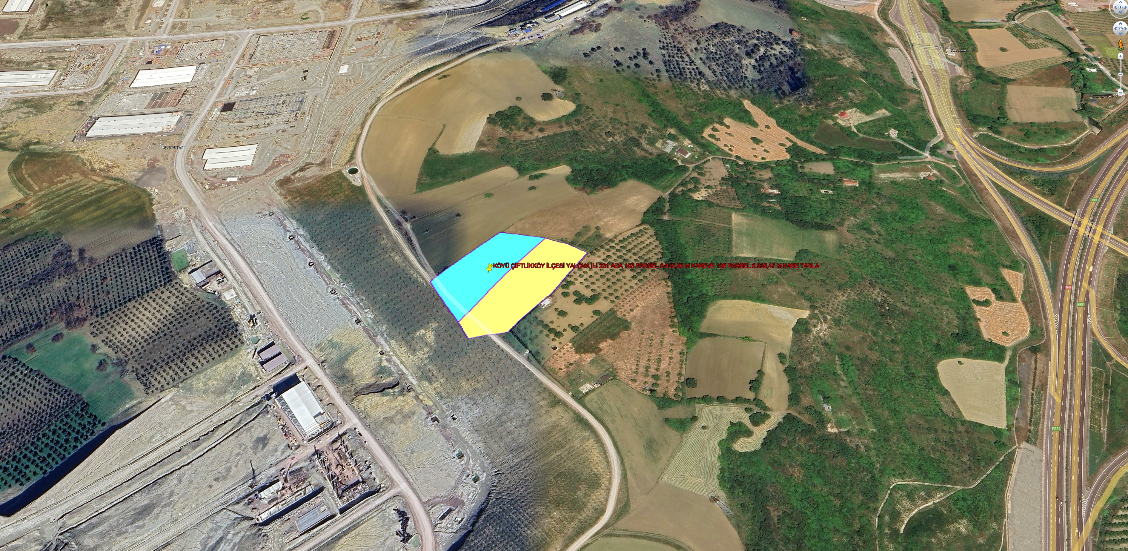 YALOVA İLİ ÇİFTLİKKÖY İLÇESİ ÇİFTLİKKÖY MEVKİİ 5415,67 M KARE TARLA KADASTROL YOLA CEPHE