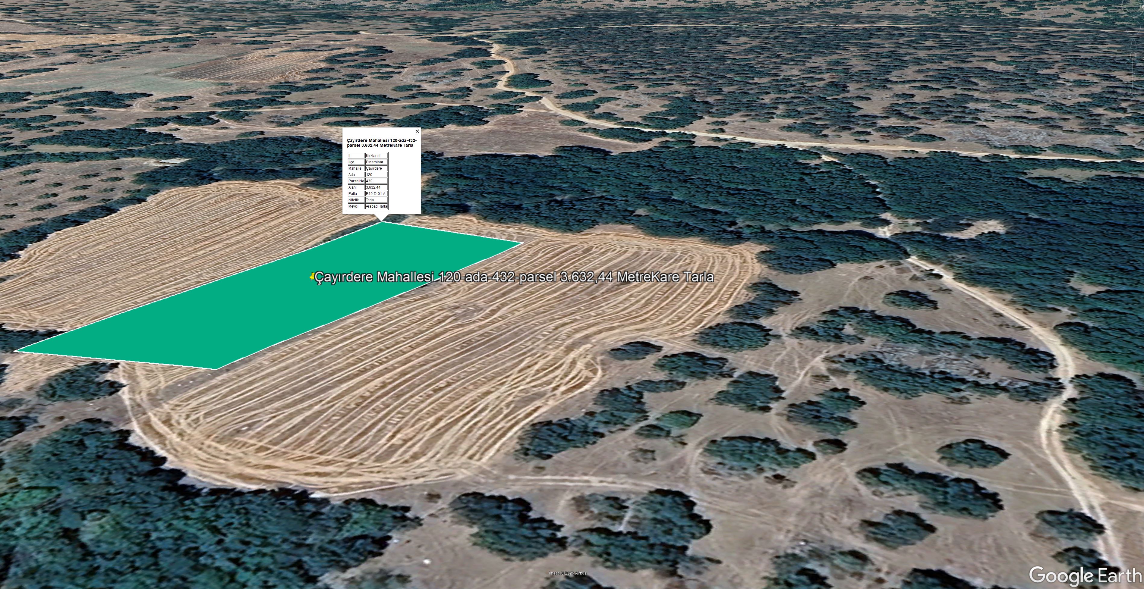 KIRKLARELİ İLİ PINARHİSAR İLÇESİ ÇAYIRDERE KÖYÜ 3.632,44 M KARE ARSA DEVLET ORMANINA CEPHE