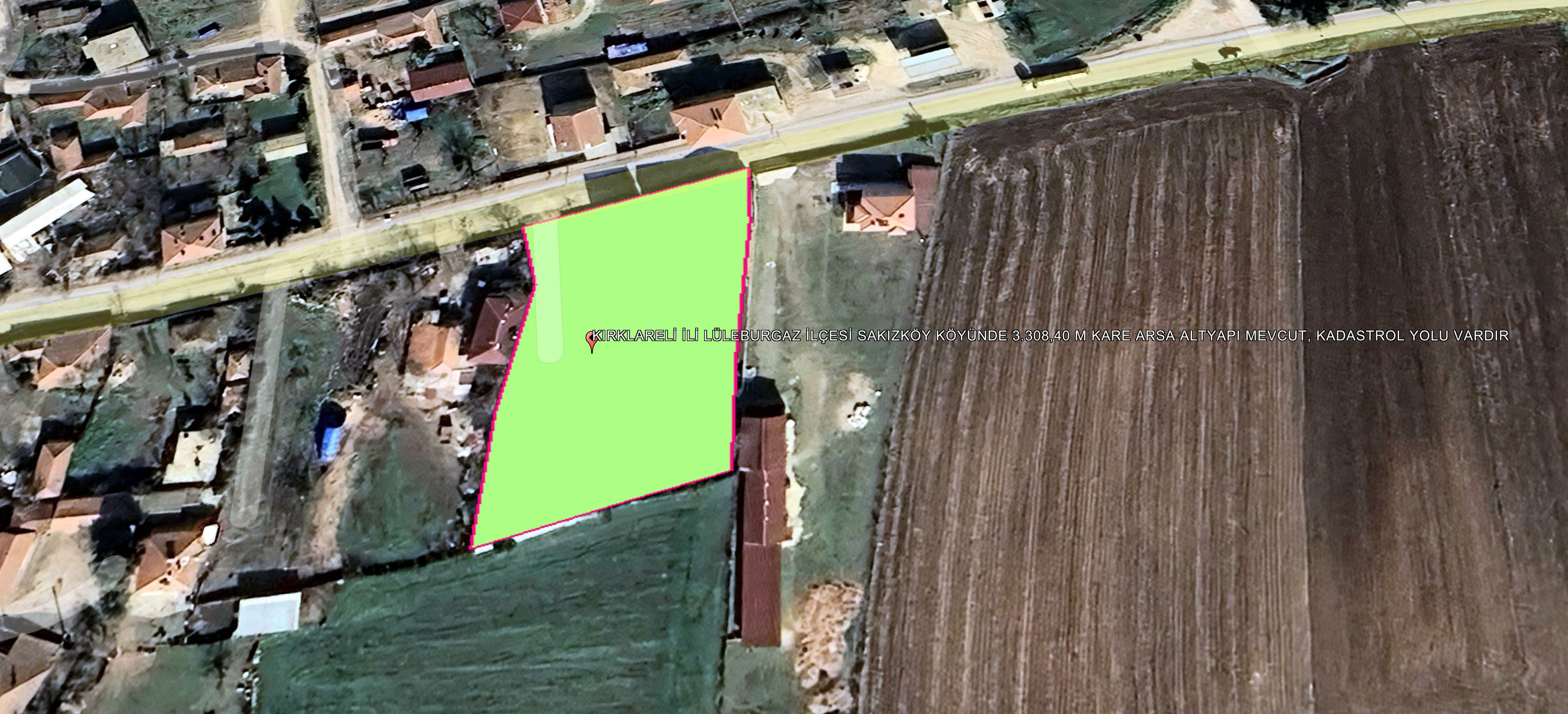 KIRKLARELİ İLİ LÜLEBURGAZ İLÇESİ SAKIZDERE KÖYÜNDE 3.308,40 M KARE ARSA ALTYAPI MEVCUT, KADASTROL YOLU VARDIR