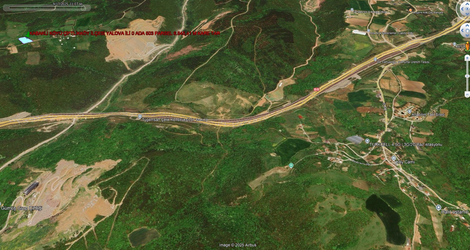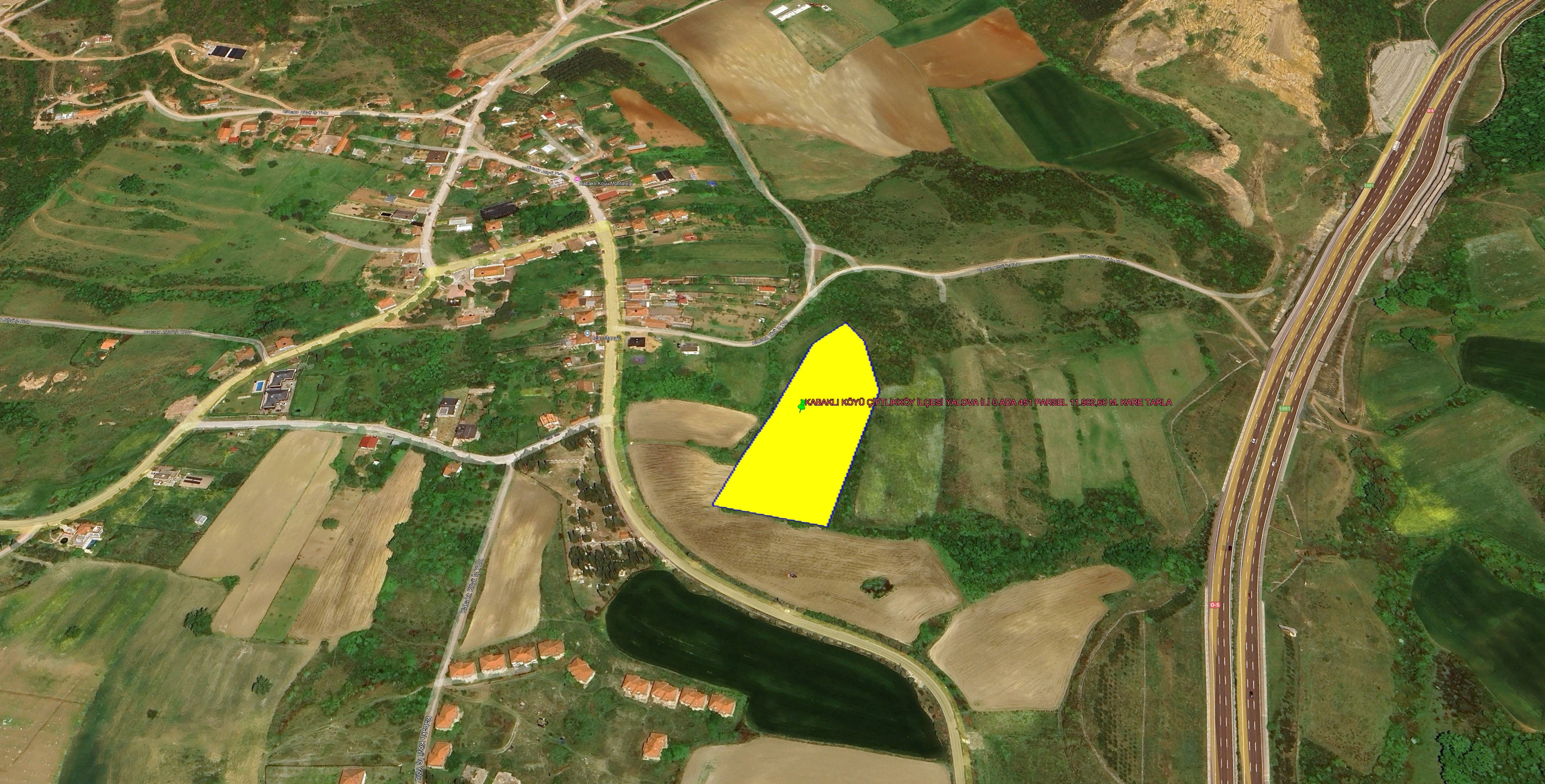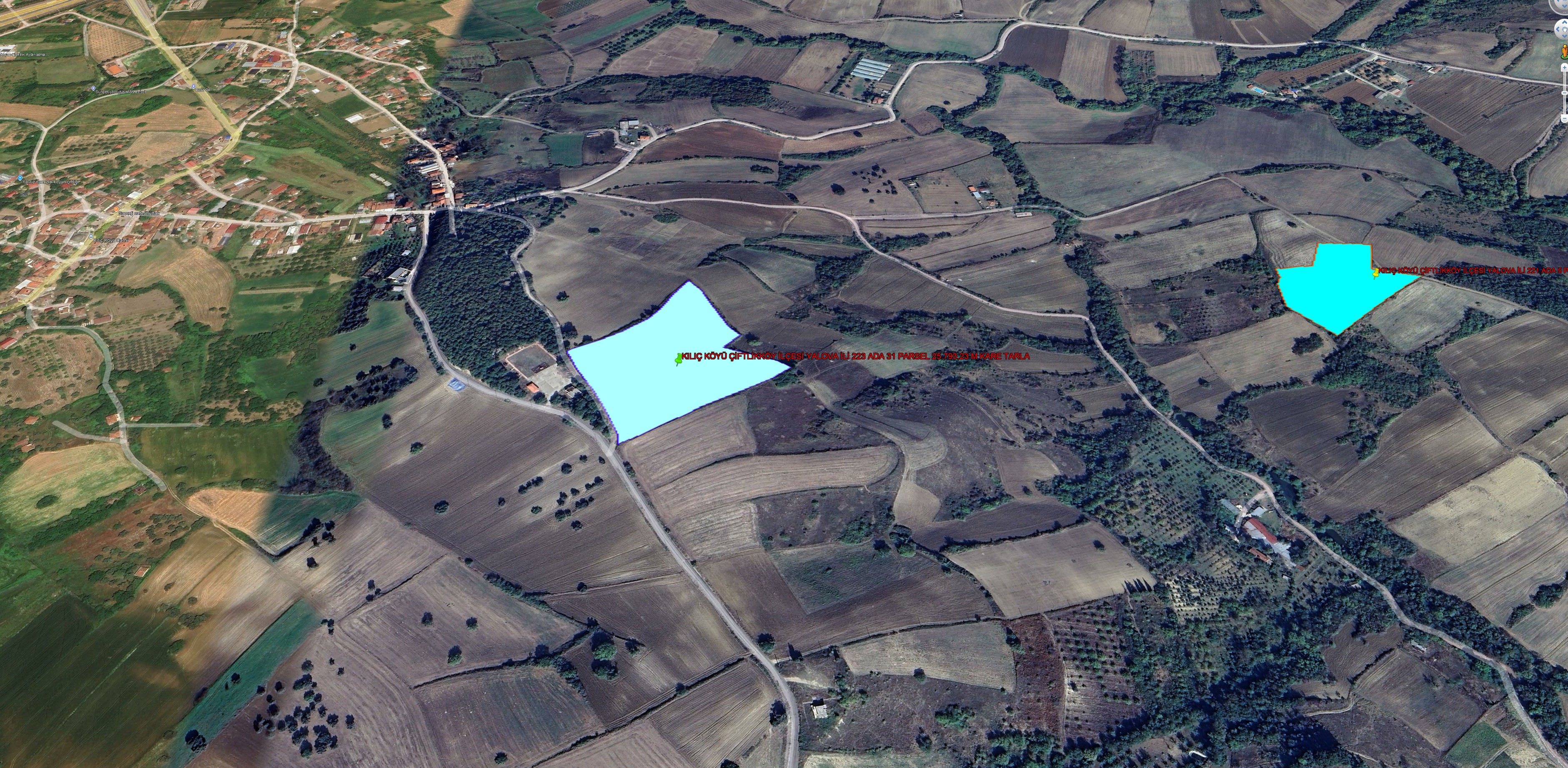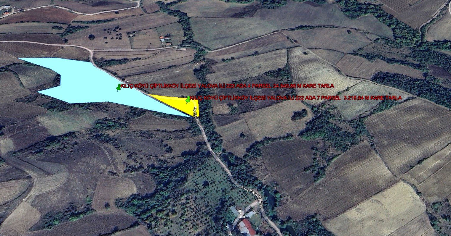 YALOVA İLİ ÇİFTLİKKÖY İLÇESİ İLYASKÖY KÖYÜ 82.514,28 M KARE TARLA KADASTROL YOLA CEPHE