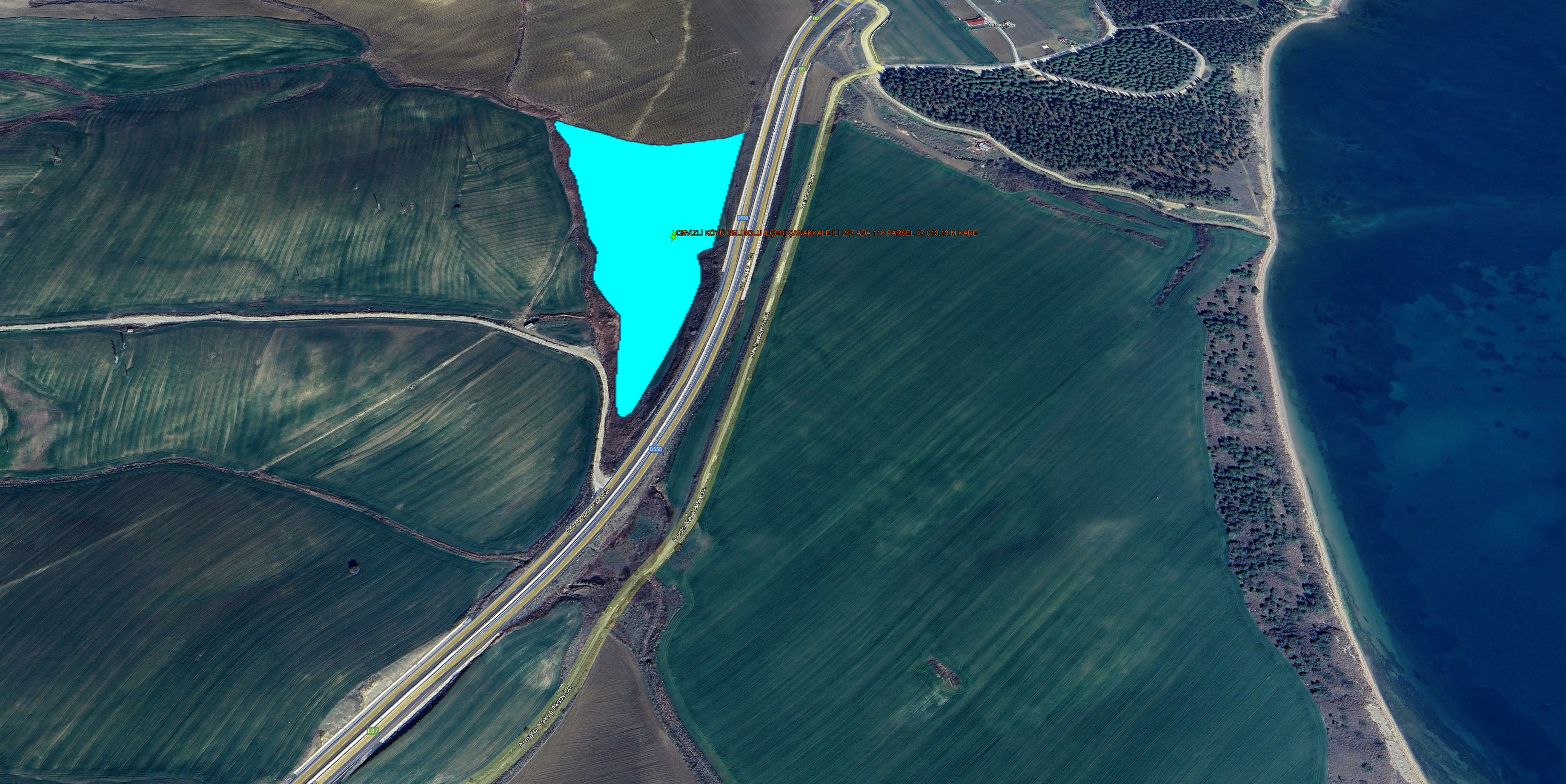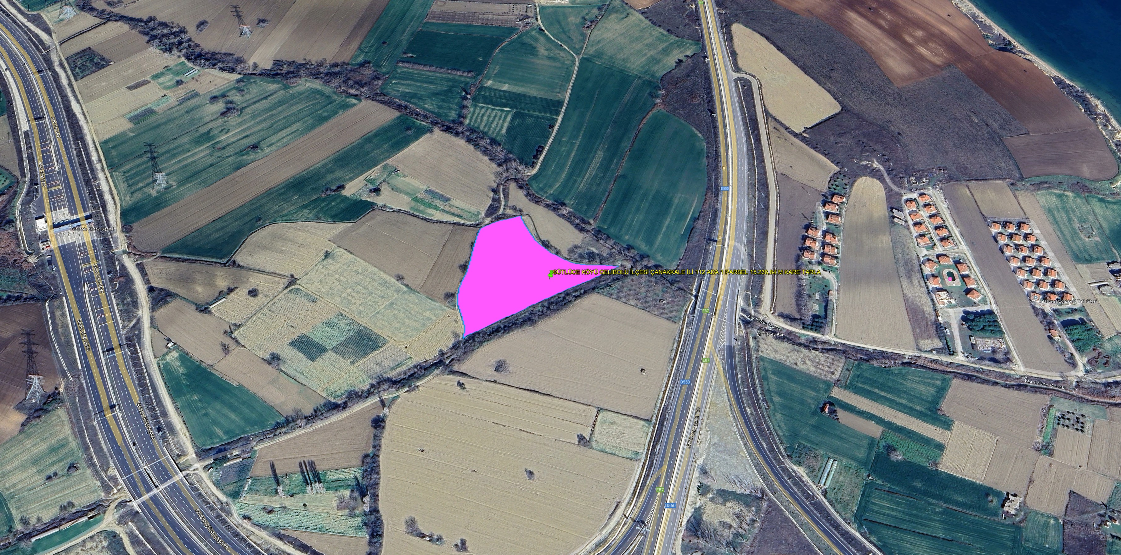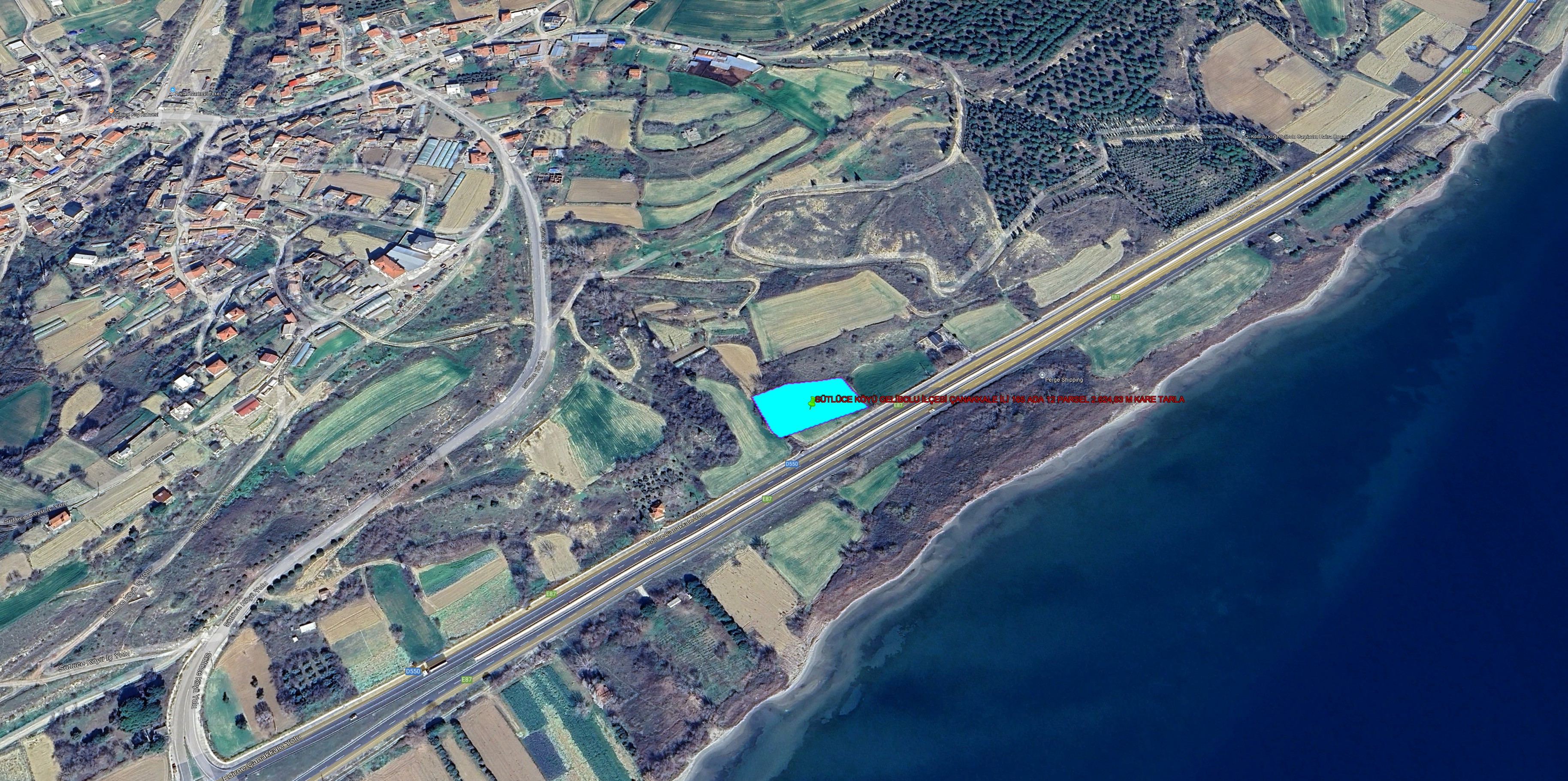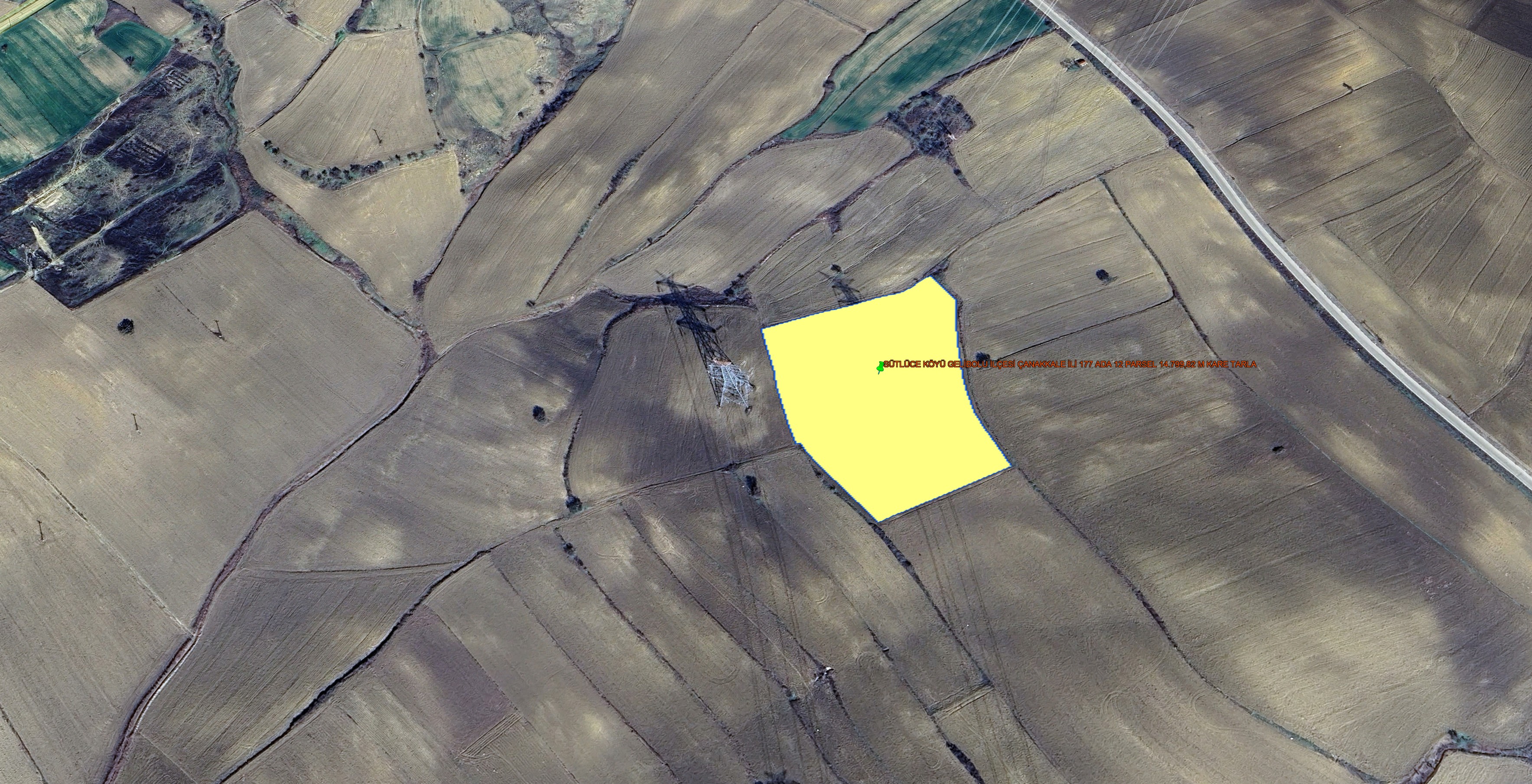 GELİBOLU SÜTLÜCE KÖYÜNDE DENİZ MANZARALI 14.799,82 M KARE TARLA