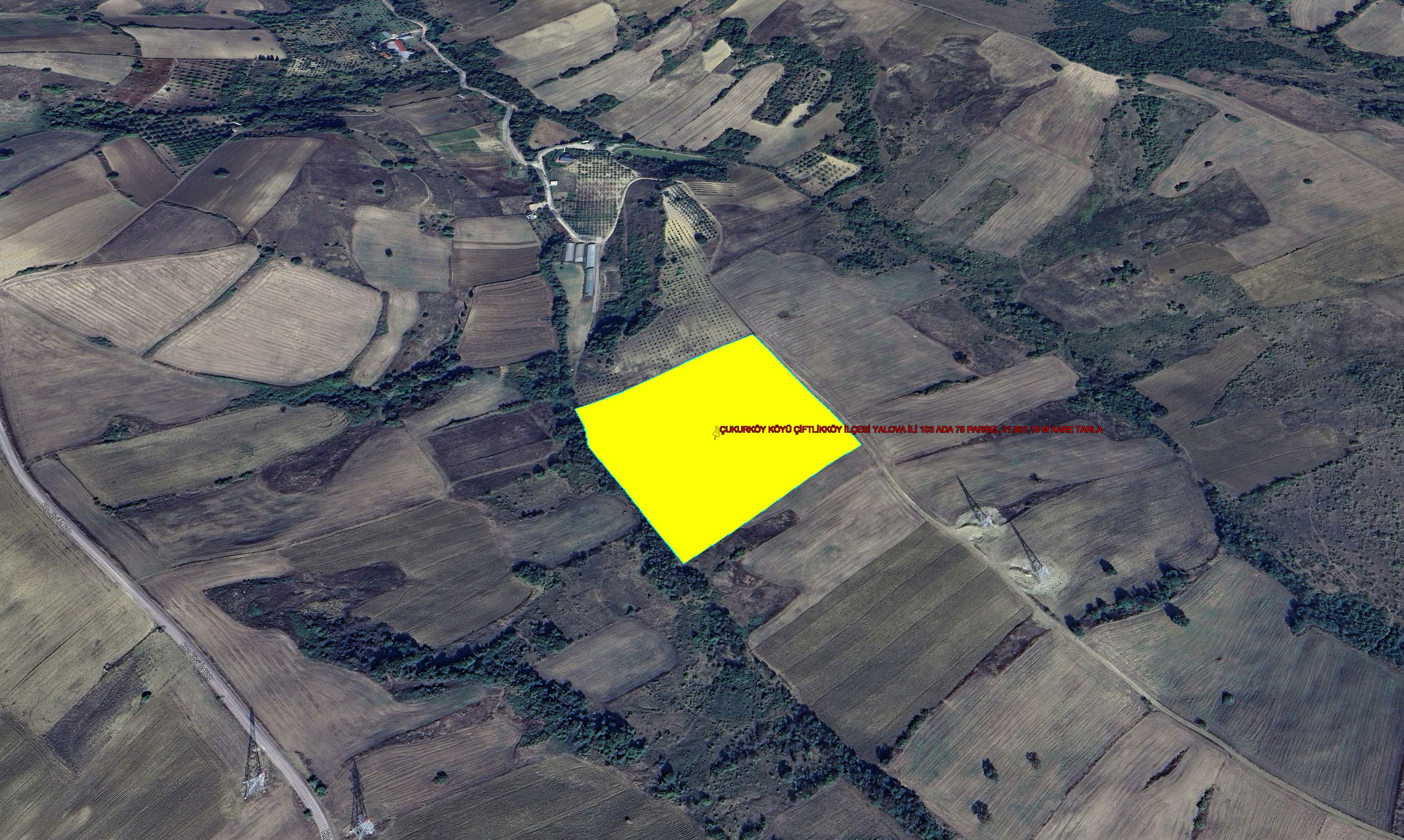 YALOVA İLİ ÇİFTLİKKÖY İLÇESİ ÇUKURKÖY KÖYÜNDE KADASTROL YOLA CEPHE 31.801,18 M KARE TARLA