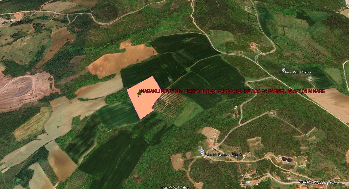 YALOVA İLİ ÇİFTLİKKÖY İLÇESİ ÇUKURKÖY KÖYÜNDE 7.520 M KARE TARLA KADASTROL YOLA CEPHE