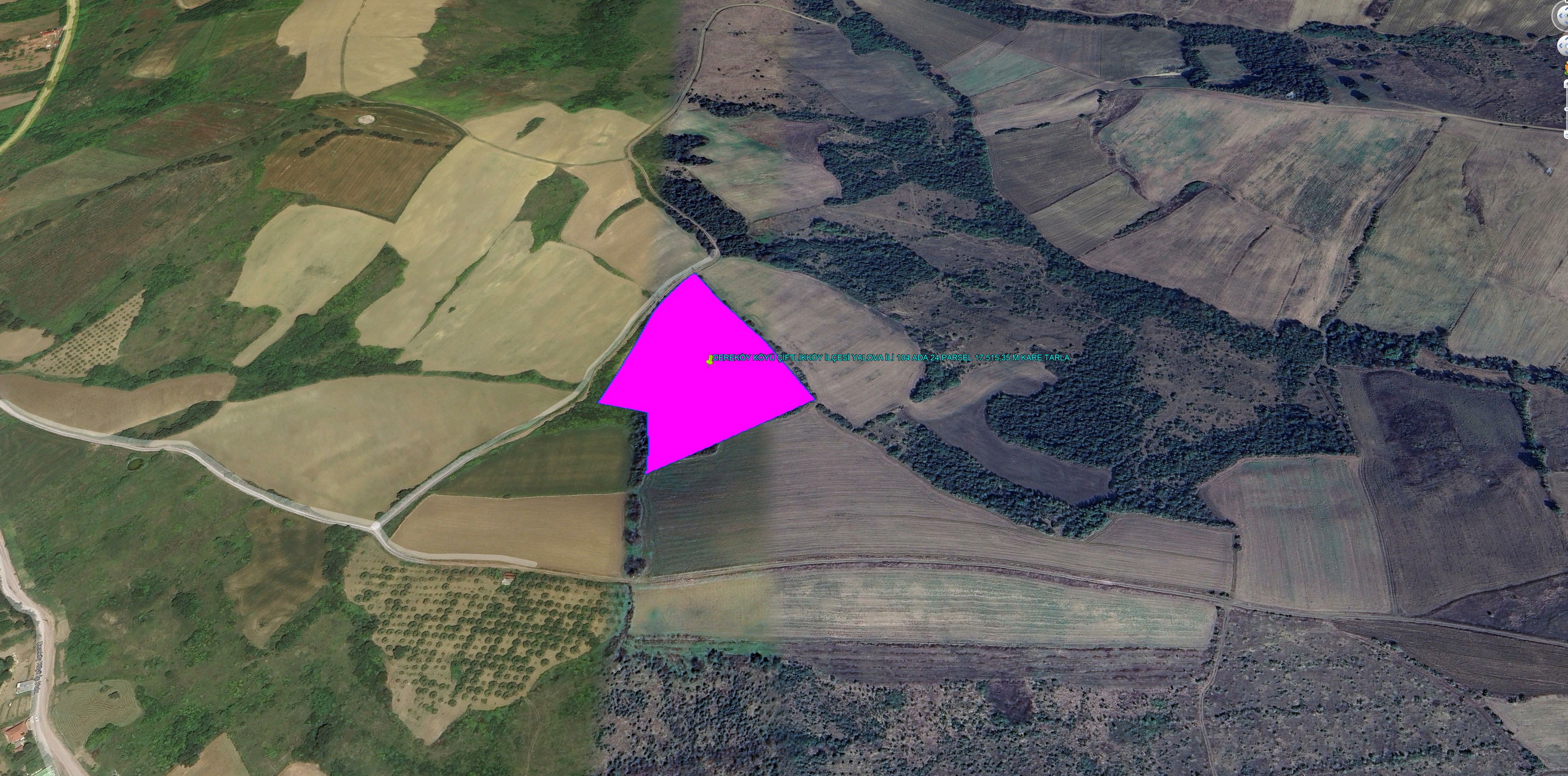 YALOVA İLİ ÇİFTLİKKÖY İLÇESİ DEREKÖY KÖYÜNDE KADASTROL YOLA CEPHE 17.515,35 M KARE TARLA