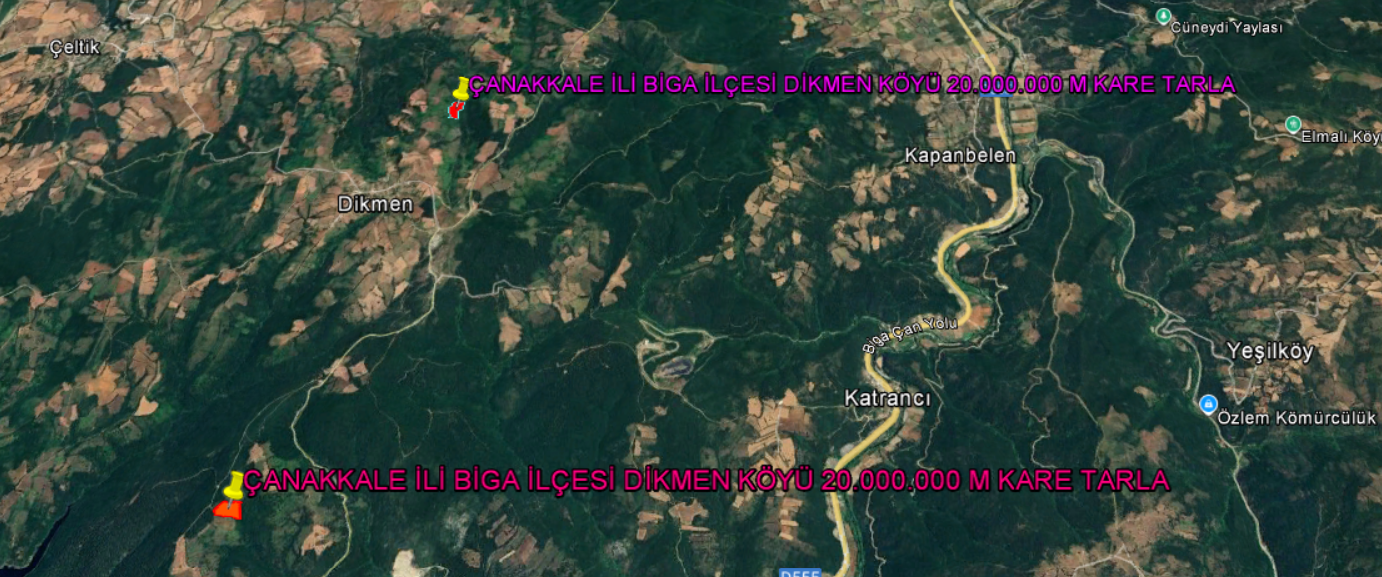 ÇANAKKALE İLİ BİGA İLÇESİ DİKMEN KÖYÜ 20.000.000 M KARE TARLA