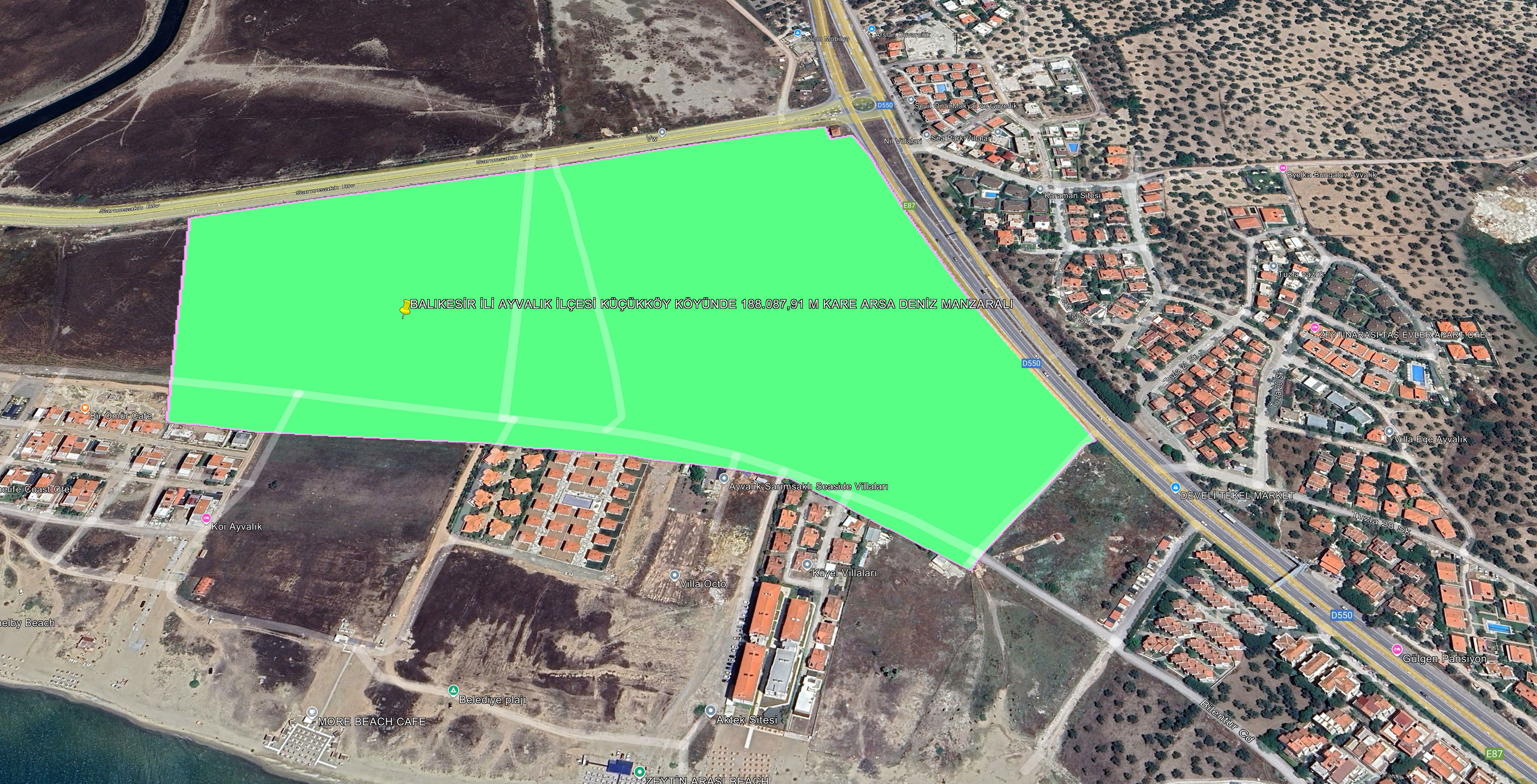 BALIKESİR İLİ AYVALIK İLÇESİ KÜÇÜKKÖY KÖYÜNDE 188.087,91 M KARE ARSA DENİZ MANZARALI
