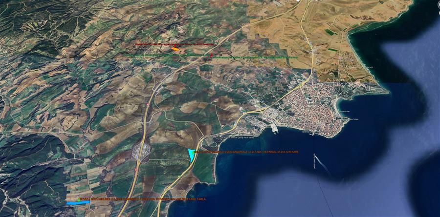GELİBOLU CEVİZLİ KÖYÜNDE İSTANBUL ASFALTINA CEPHE FULL BOĞAZ VE KÖPRÜ MANZARALI 41.013,13 M KARE TARLA