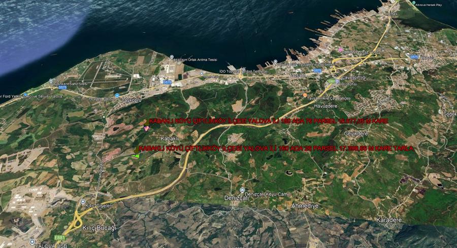 YALOVA ÇİFTLİKKÖY KABAKLI KÖYÜ YAKINI 16.677,05 M KARE TARLA