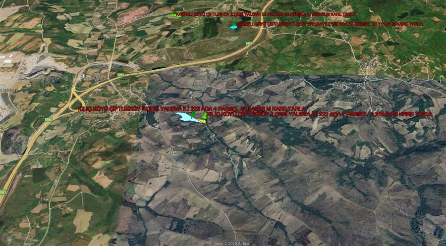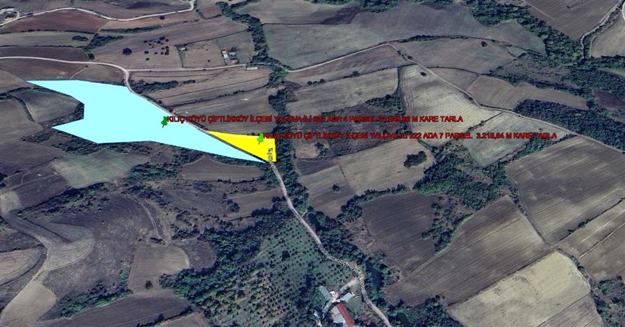 YALOVA ÇİFTLİKKÖY KILIÇ KÖYÜNDE 27.768,05 M KARE TARLA KADASTROL YOLA CEPHE