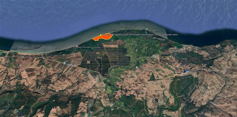 BALIKESİR İLİ GÖNEN İLÇESİ ÇİFTÇEŞMELER KÖYÜNDE 736.065,00 M KARE ARSA DENİZE SIFIR