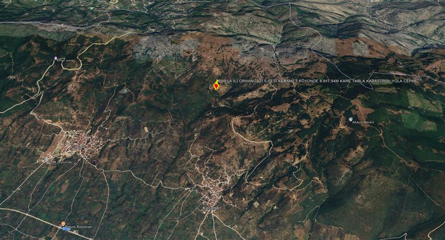 BURSA İLİ ORHANGAZİ İLÇESİ KERAMET KÖYÜNDE 8.917,94M KARE TARLA KADASTROL YOLA CEPHE