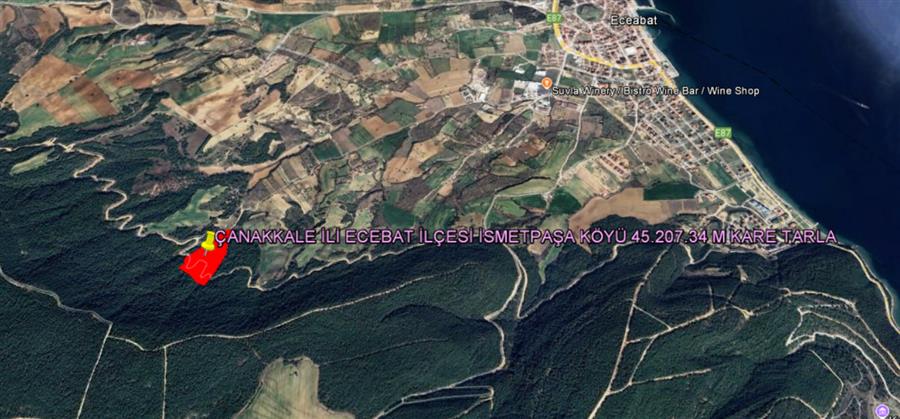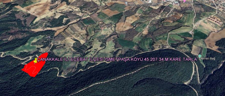 ÇANAKKALE İLİ ECEABAT İLÇESİ İSMETPAŞA KÖYÜ 45.207,34 M KARE TARLA