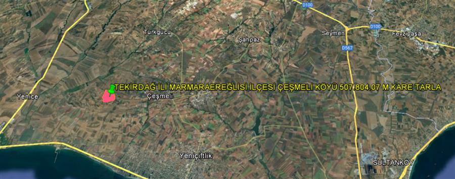 TEKİRDAĞ İLİ MARMARAEREĞLİSİ İLÇESİ ÇEŞMELİ KÖYÜ 507.804,07 M KARE TARLA