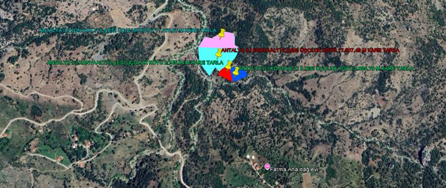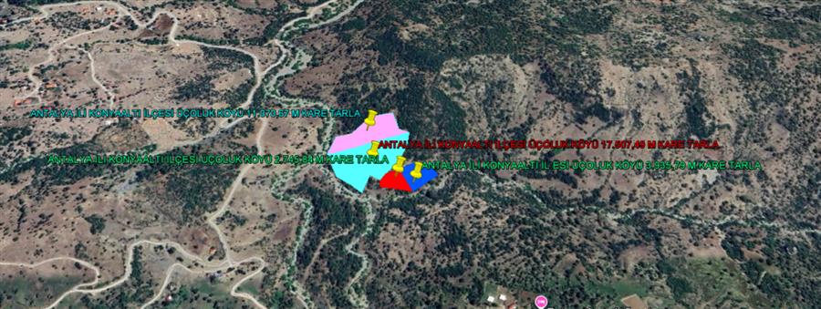 ANTALYA İLİ KONYAALTI İLÇESİ ÜÇOLUK KÖYÜ 4 PARSEL TOPLAMI 35.259,79 M KARE TARLA