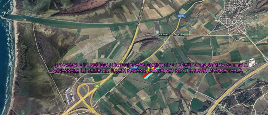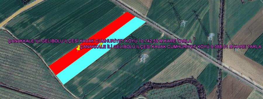ÇANAKKALE İLİ GELİBOLU İLÇESİ KAVAK CUMHURİYET KÖYÜ İKİ PARSEL TOPLAMI 20.130,01 M KARE TARLA