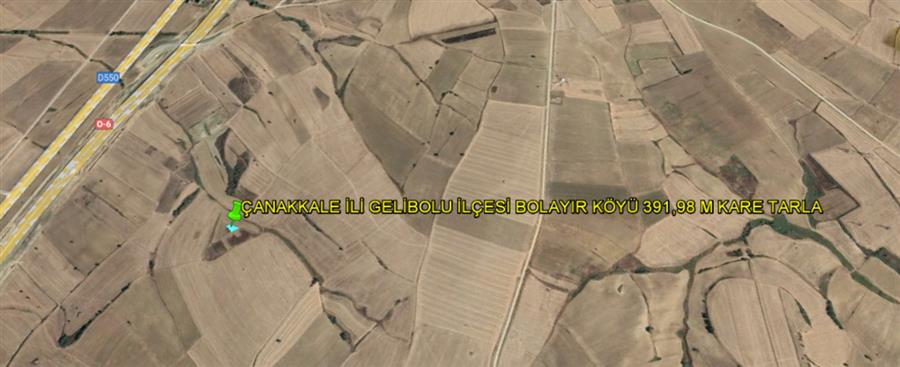 ÇANAKKALE İLİ GELİBOLU İLÇESİ BOLAYIR KÖYÜ 391,98 M KARE TARLA