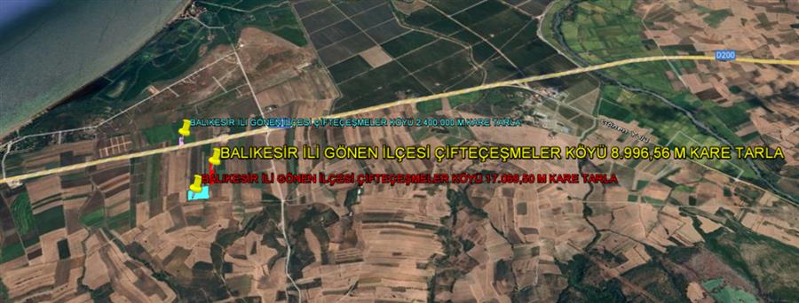 BALIKESİR İLİ GÖNEN İLÇESİ ÇİFTEÇEŞMELER KÖYÜ 8.996,56 m² TARLA