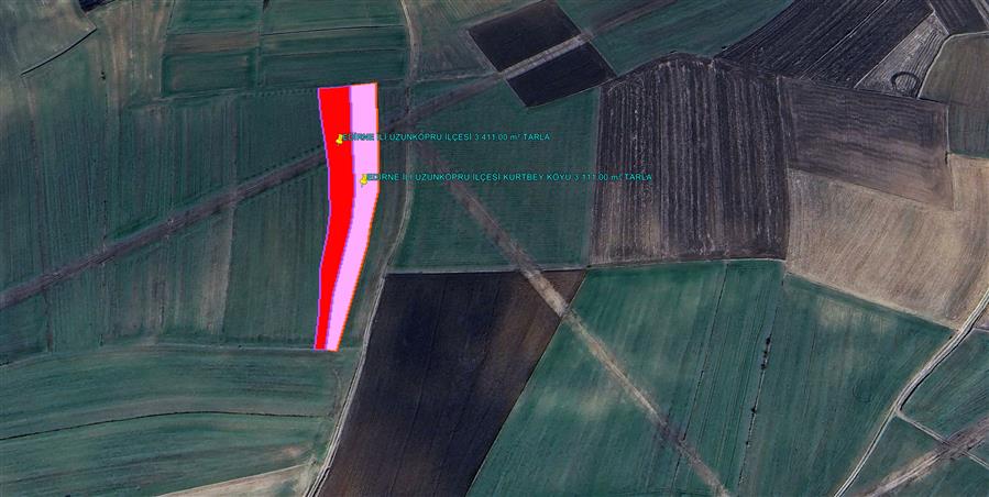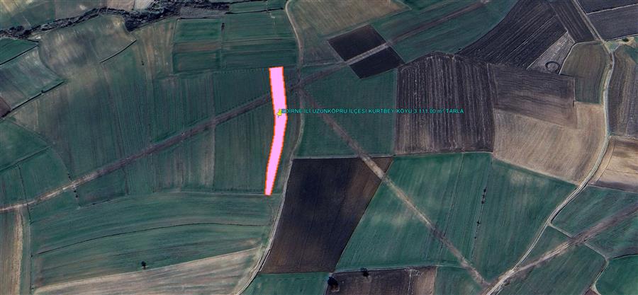 EDİRNE İLİ UZUNKÖPRÜ İLÇESİ KURTBEY KÖYÜ İKİ PARSEL TOPLAMI 6.522 m² TARLA