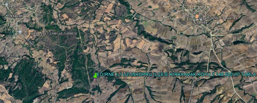 EDİRNE İLİ UZUNKÖPRÜ İLÇESİ KIRKKAVAK KÖYÜ 2.140,00 m² TARLA