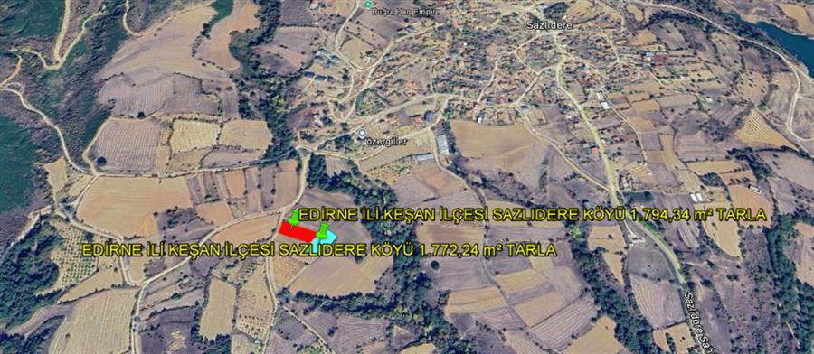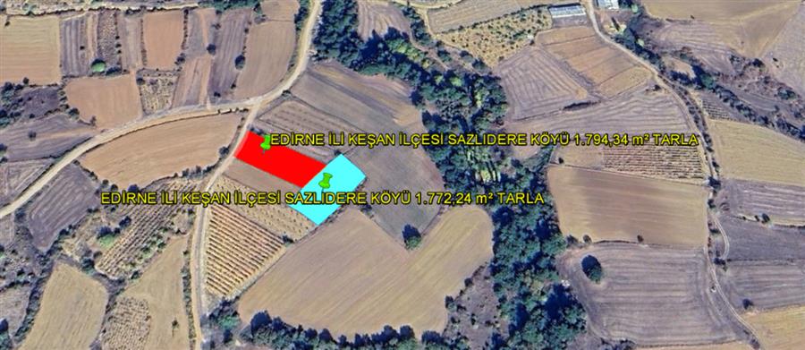 EDİRNE İLİ KEŞAN İLÇESİ SAZLIDERE KÖYÜ İKİ PARSEL TOPlAMI 3.566,58 m² TARLA