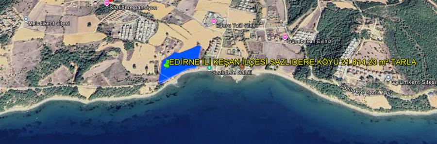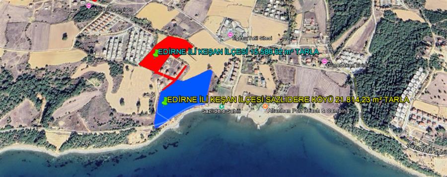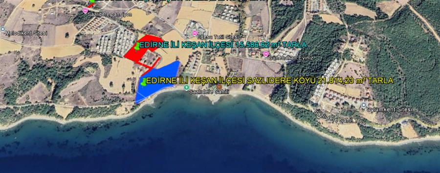 EDİRNE İLİ KEŞAN İLÇESİ SAZLIDERE KÖYÜ İKİ PARSEL TOPlAMI 37.400,85 m² DENİZE SIFIR TARLA
