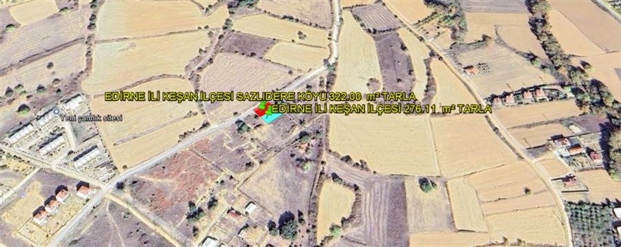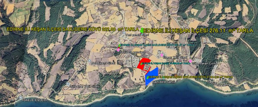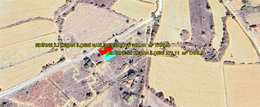 EDİRNE İLİ KEŞAN İLÇESİ GSAZLIDERE KÖYÜ İKİ PARSEL TOPLAMI 598,11 m² TARLA