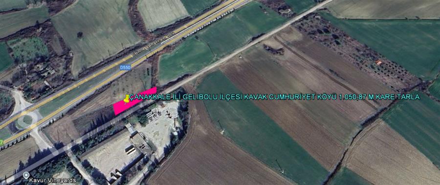ÇANAKKALE İLİ GELİBOLU İLÇESİ KAVAK CUMHURİYET KÖYÜ 1.050,87 m² TARLA