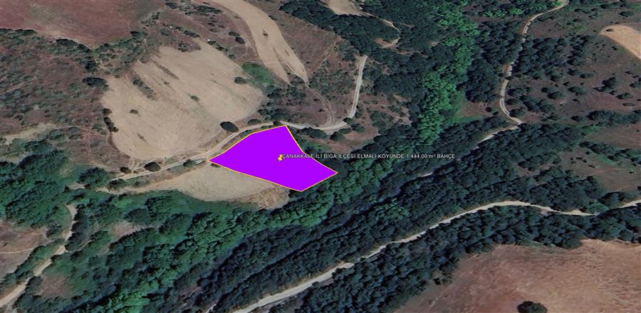 ÇANAKKALE İLİ BİGA İLÇESİ ELMALI KÖYÜNDE 1.444,00 m² BAHÇE KADASTROL YOLA CEPHE