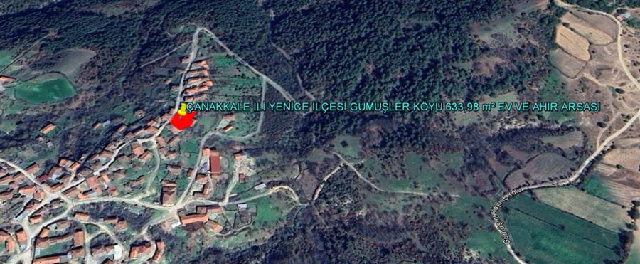 ÇANAKKALE İLİ YENİCE İLÇESİ GÜMÜŞLER KÖYÜ 633,98 m² EV VE AHIR ARSASI