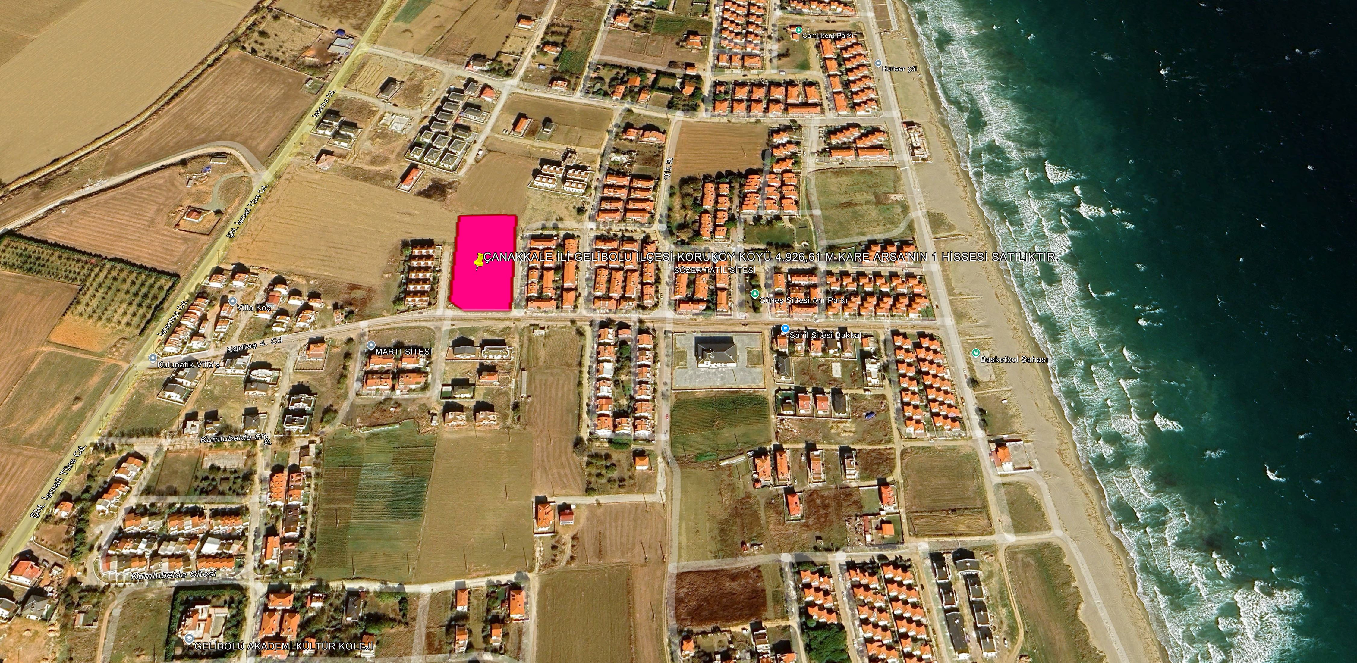 ÇANAKKALE İLİ GELİBOLU İLÇESİ KORUKÖY KÖYÜ 4.926,61 M KARE ARSA'NIN 115 M KARE HİSSESİ SATILIKTIR.