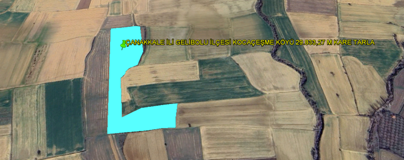 ÇANAKKALE İLİ GELİBOLU İLÇESİ KOCAÇEŞME KÖYÜ 29.833,27 M KARE TARLA