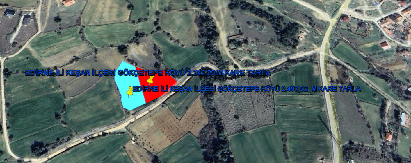 EDIRNE PROVINCE KESAN COUNTY GÖKÇETEPE VILLAGE TWO PARCELS 4.739,31 m² LAND