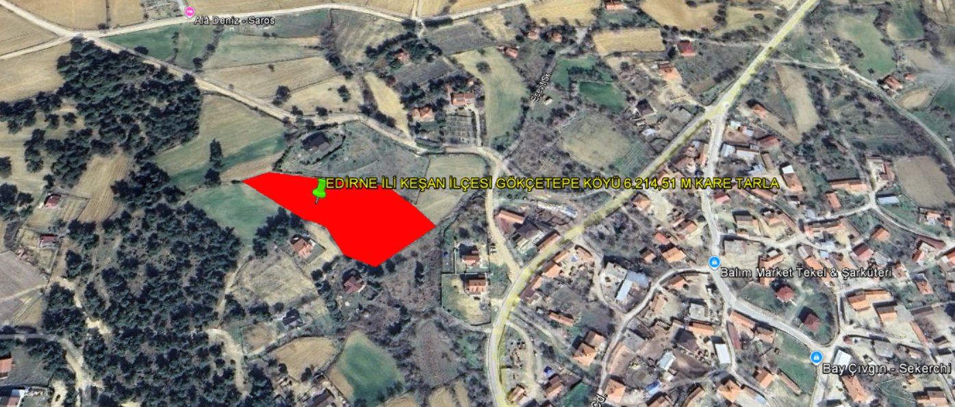 EDIRNE PROVINCE KESAN COUNTY GÖKÇETEPE VILLAGE 6.214,51 m² LAND